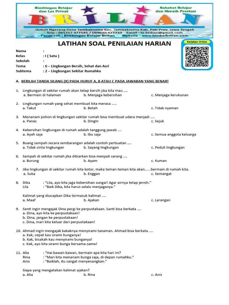 - "Ulangan Harian Tema 6 Kelas 1 PDF": Jika Anda mencari soal untuk evaluasi harian.